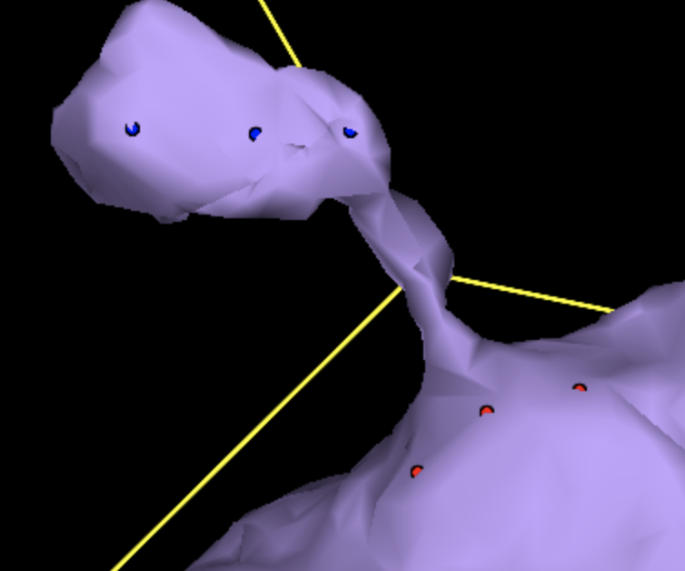 - In the 3D view, place points around the region you want to split on mesh 1. To place points hold Shift + Control while you click on a mesh.